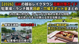 2026年GWの越谷レイクタウンを120%楽しむための地元民直伝攻略法!東埼玉道路の「右折入庫規制」を回避する最短ルートから、満車を避ける駐車場選び、ランチ難民を回避するピクニック術まで、これ1本で全てがわかります。s
